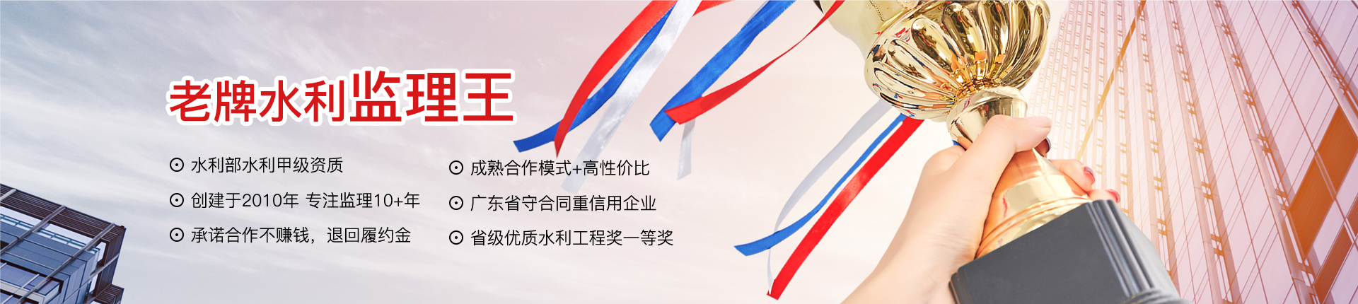 廣東中水工程監(jiān)理有限公司成立于2010年7月,是一家工程監(jiān)理綜合性服務(wù)企業(yè)。公司擁有水利部水利甲級、房屋建筑/市政公用甲級等資質(zhì),被列入廣東省政府采購代理機(jī)構(gòu)指定企業(yè),多次獲得“廣東省守合同重信用企業(yè)”等榮譽(yù)。